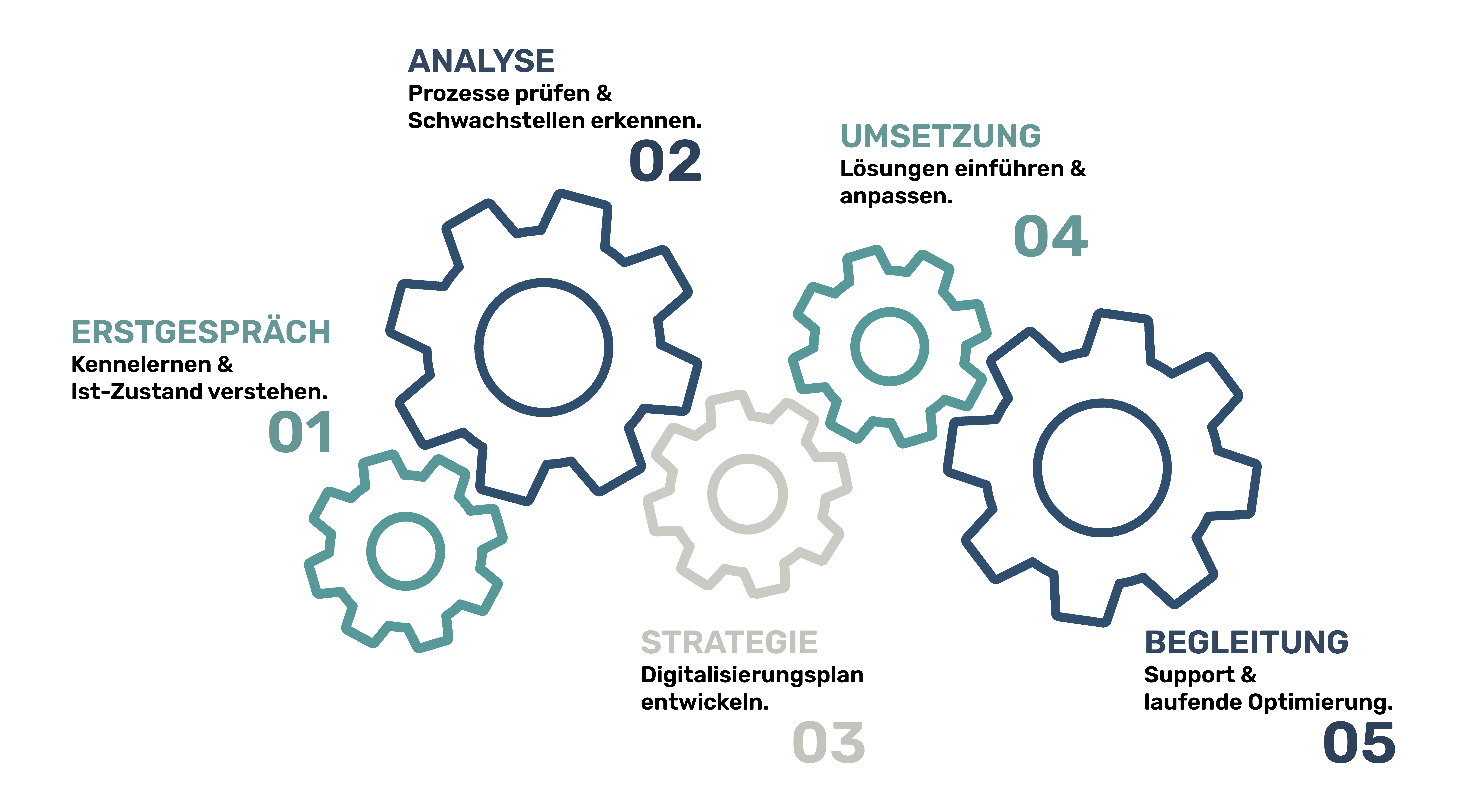 Für uns ist Digitalisierung weit mehr als die Einführung einer neuen Software. Sie beginnt mit dem Verstehen bestehender Strukturen, führt über die gezielte Optimierung von Prozessen – und endet in der praxisnahen, nachhaltigen Umsetzung.